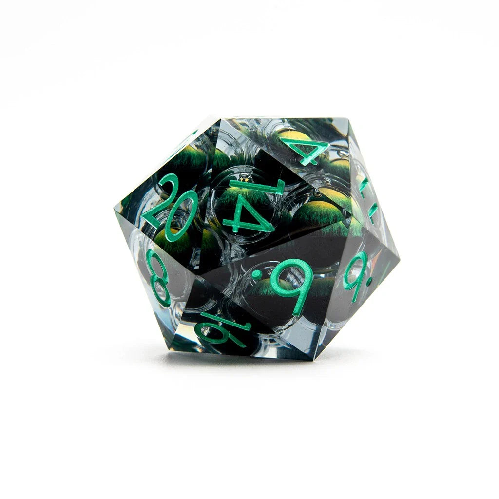In jedem Würfel befinden sich unzählige Augäpfel, unheimlich schwebend in einem reibungslosen flüssigen Kern. Beim Würfeln drehen und wenden sich die Augen und starren schließlich bedrohlich nach oben, beobachtend und wartend. Perfekt auf die dunklen und mystischen Welten von Dungeons and Dragons abgestimmt, verleiht dieser Würfel Ihren Spielsitzungen eine zusätzliche Ebene der Faszination und Spannung.