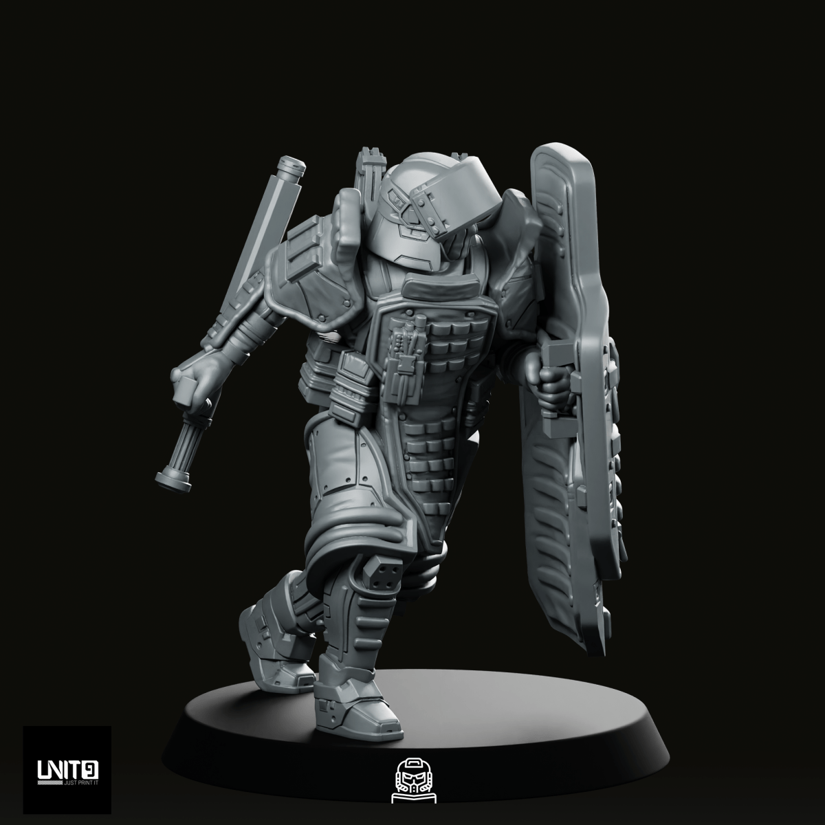Modelled faithfully to Unit9’s original design, Red P3 is available in 28mm, 32mm, 35mm, and 55mm scales, ready to slot into Dungeons and Dragons campaigns or any Sci-fi tabletop game. Ideal for players who favour defensive strategies or characters with grit and practicality, this miniature brings a grounded realism to your forces. With layers of detail waiting to be painted and a posture that tells a story, Red P3 is a brilliant addition to any game board or collection.