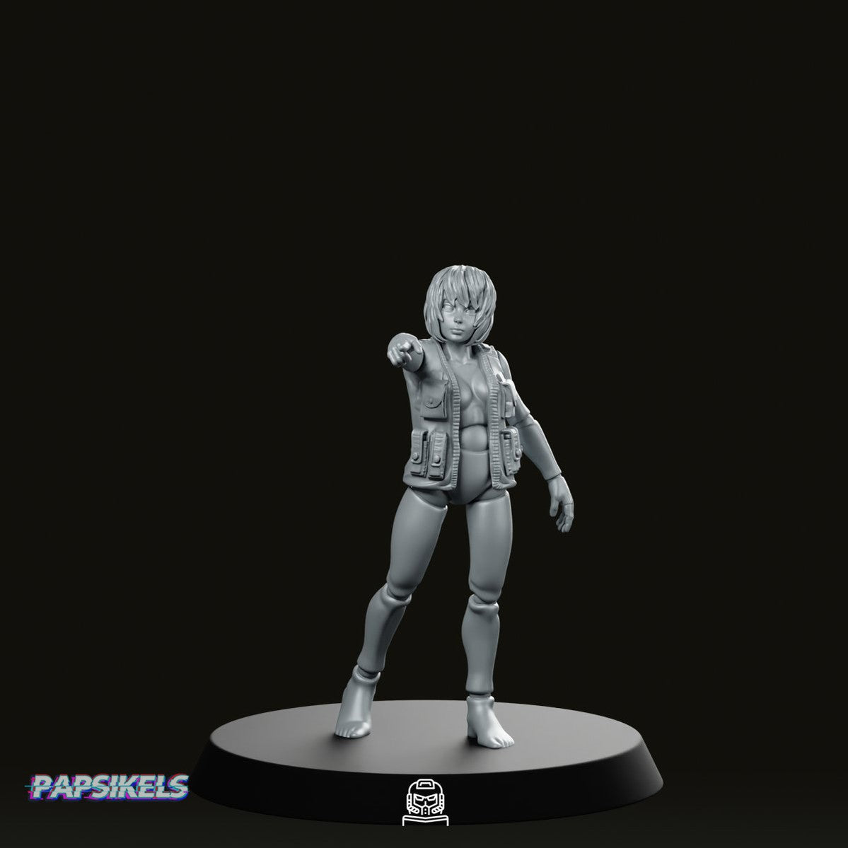 Available in 28mm, 32mm, 35mm, and 55mm scales, this miniature stays true to Papsikels’ exceptional design, showcasing elegant details that make it both futuristic and lifelike. Ideal for sci-fi tabletop games like Starfinder, this model adds a touch of sophistication and mystery to any campaign.