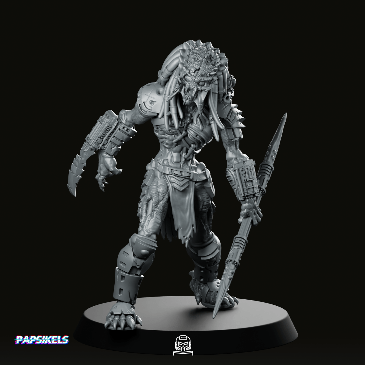 The model’s skeletal features, ragged attire, and weapon-ready pose make it a standout addition to any Sci-fi tabletop game. Ideal for use in Necromund, Starfinder, or Dungeons and Dragons, it’s ready to strike fear into both players and characters alike. Available in 28mm, 32mm, 35mm, and 55mm scales, it stays true to Papsikels' original design and delivers maximum narrative potential with every encounter.